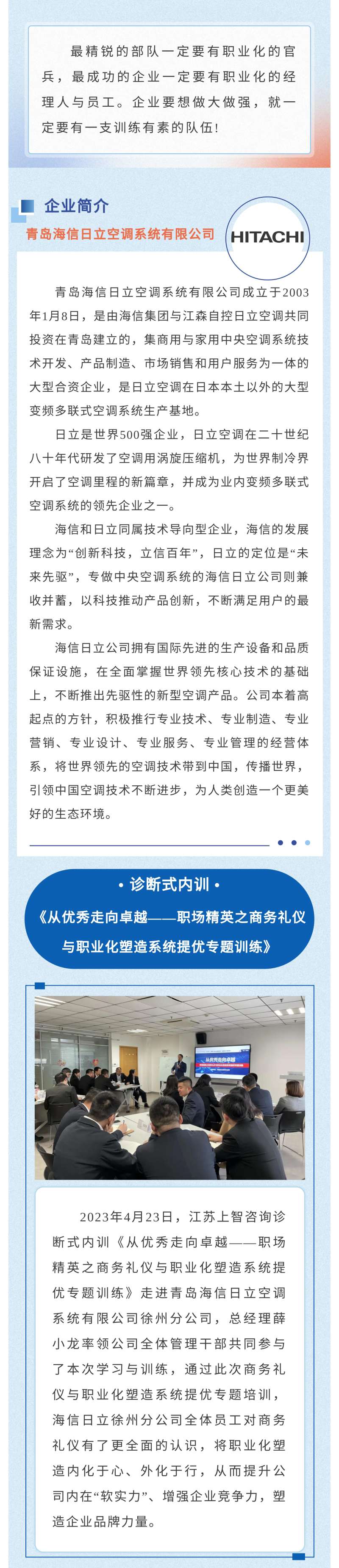 《职场精英之商务礼仪与职业化塑造系统提优专题训练》走进青岛海信日立空调系统有限公司徐州分公司 | 江苏上智咨询